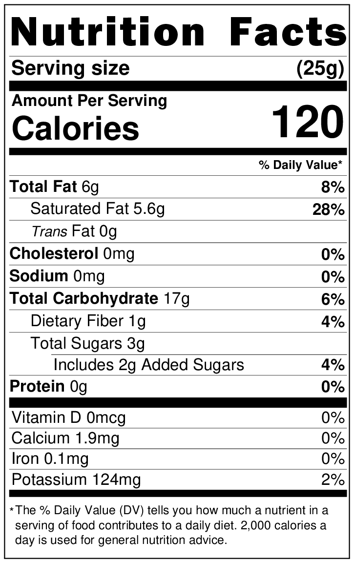 Packed in a facility that also handles nuts, peanuts, soy, sesame, and wheat.