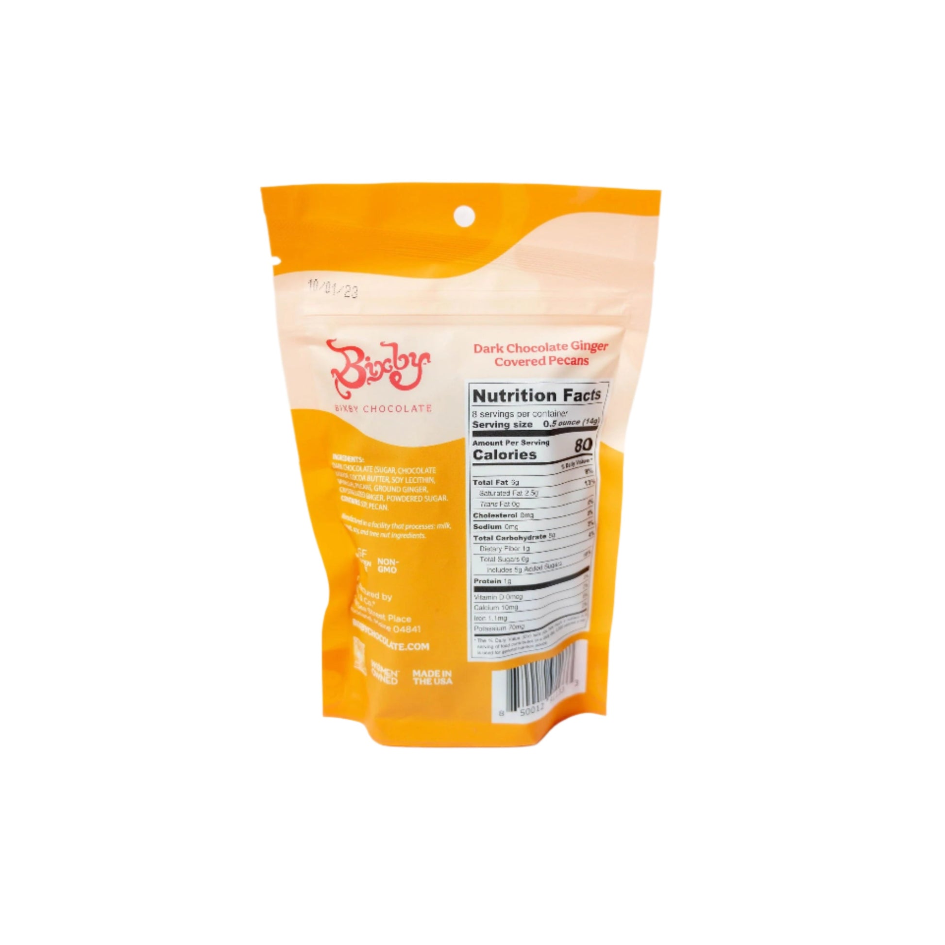 Nueces pecanas cubiertas con jengibre y chocolate negro