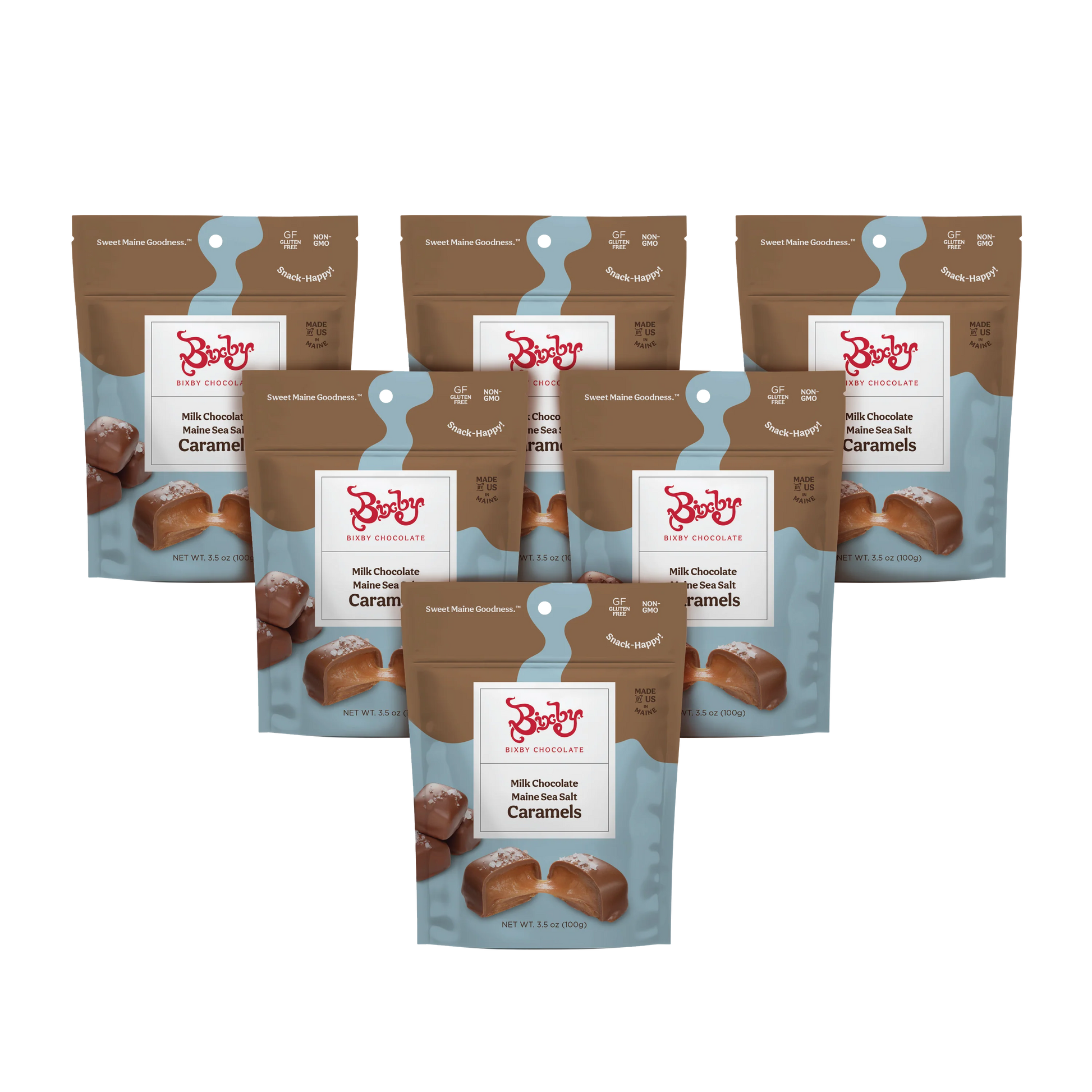 Elaborados en la costa de Maine, en Rockland, los Caramelos con Sal Marina Bixby & Co. son pequeños trozos de caramelo premium bañados en chocolate con leche de lujo y espolvoreados con cristales de sal marina del frío océano de Maine. Si bien técnicamente son dulces, están hechos para que disfrutes sin remordimientos de la auténtica dulzura de Maine.