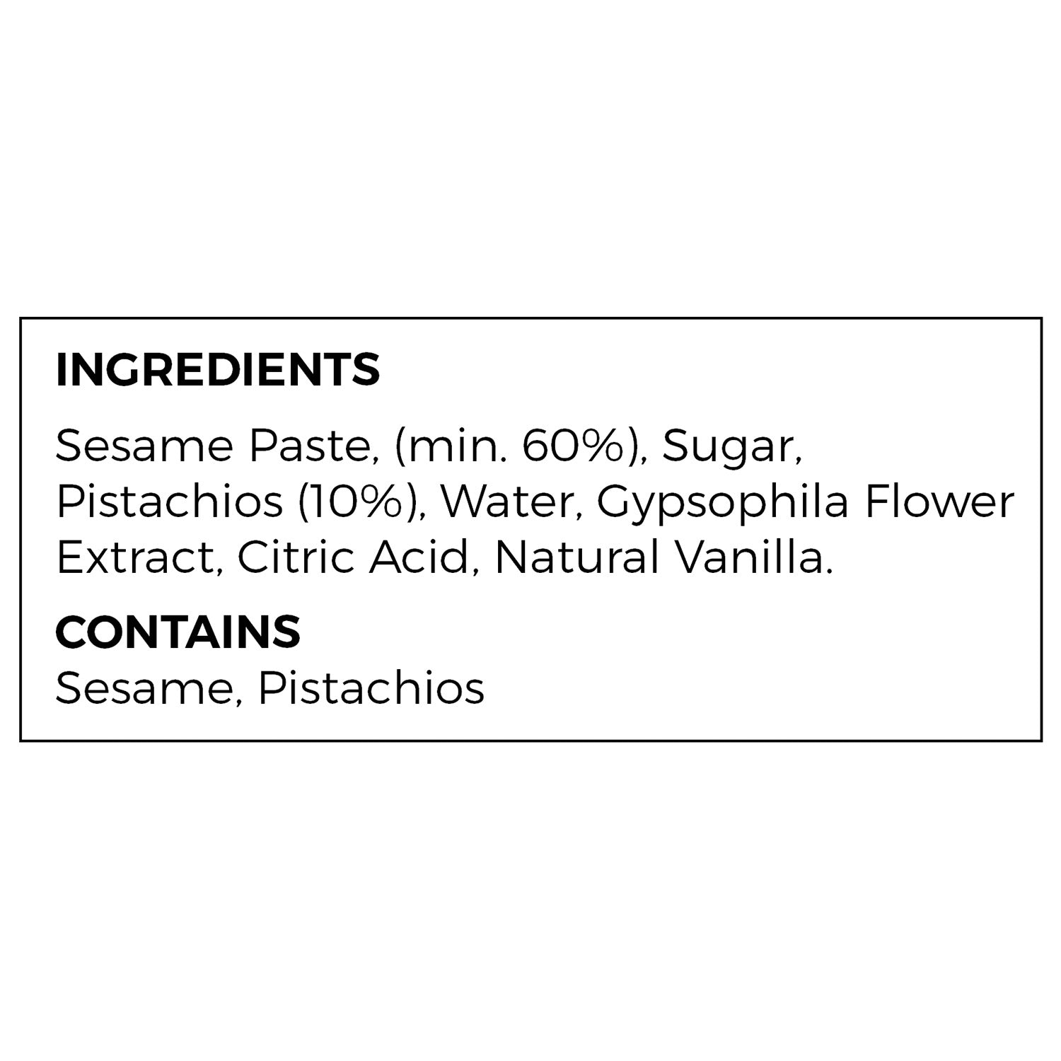 Elaborado con tahini de primera calidad y generosamente cubierto con pistachos crujientes, este tradicional bocadillo mediterráneo ofrece una textura suave que se derrite en la boca y un sabor a nuez tostada perfectamente equilibrado.