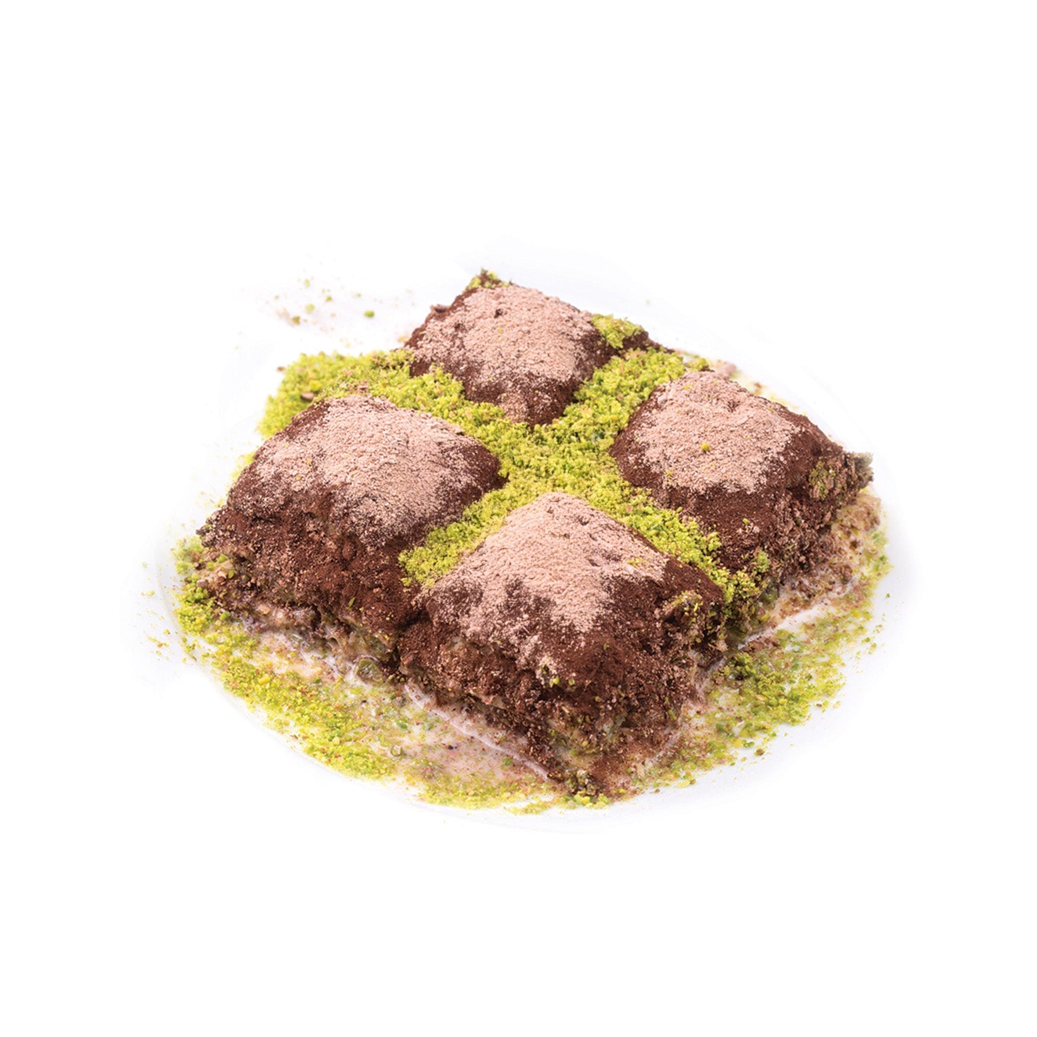 Delicias cremosas de pistacho : hojaldre de masa kataifi combinado con pistachos de primera calidad y un almíbar de leche aterciopelado.