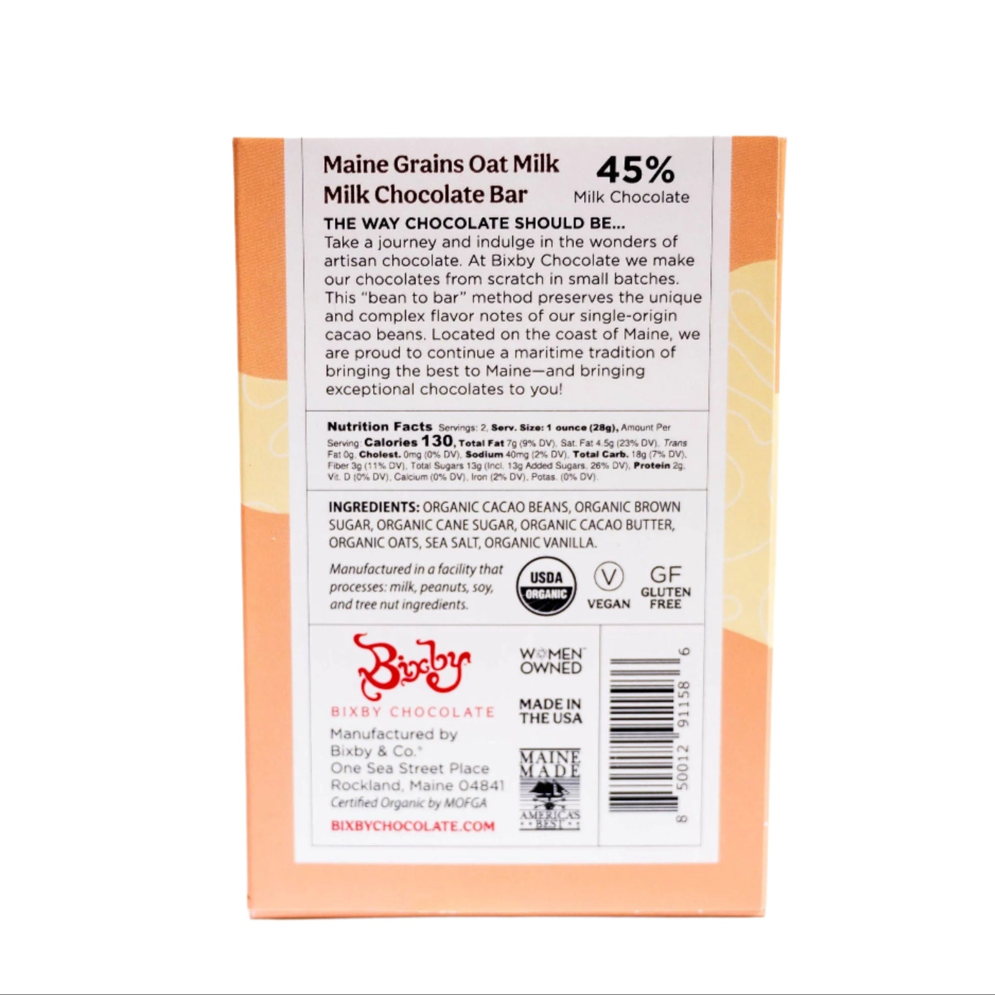 Barra de chocolate con leche y avena de granos orgánicos de Maine (vegana)