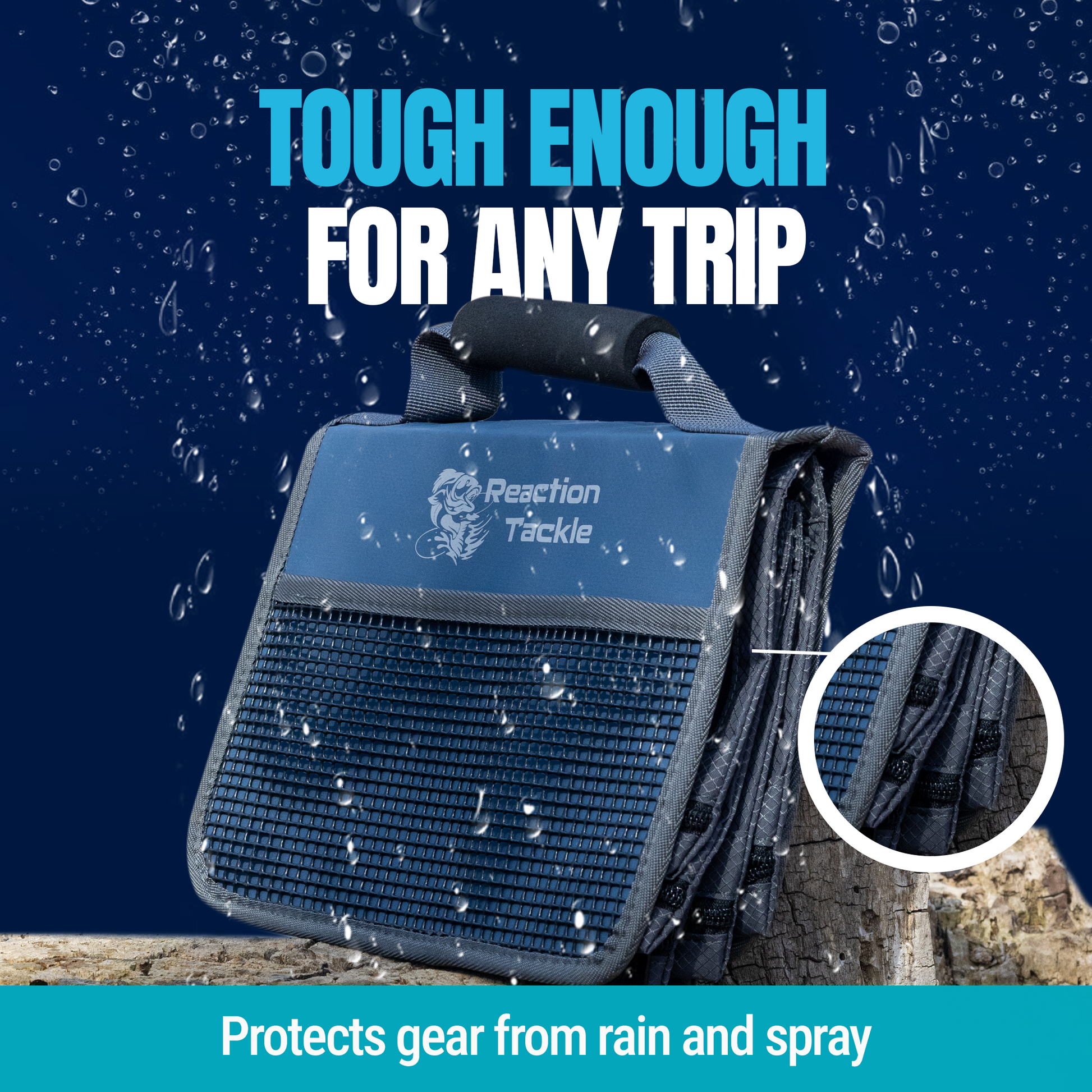 Organizador de aparejos de pesca Reaction Tackle: para cebos y aparejos de plástico blando, amplio espacio de almacenamiento, carpeta para cebos blandos, resistente al agua salada, plegable.
