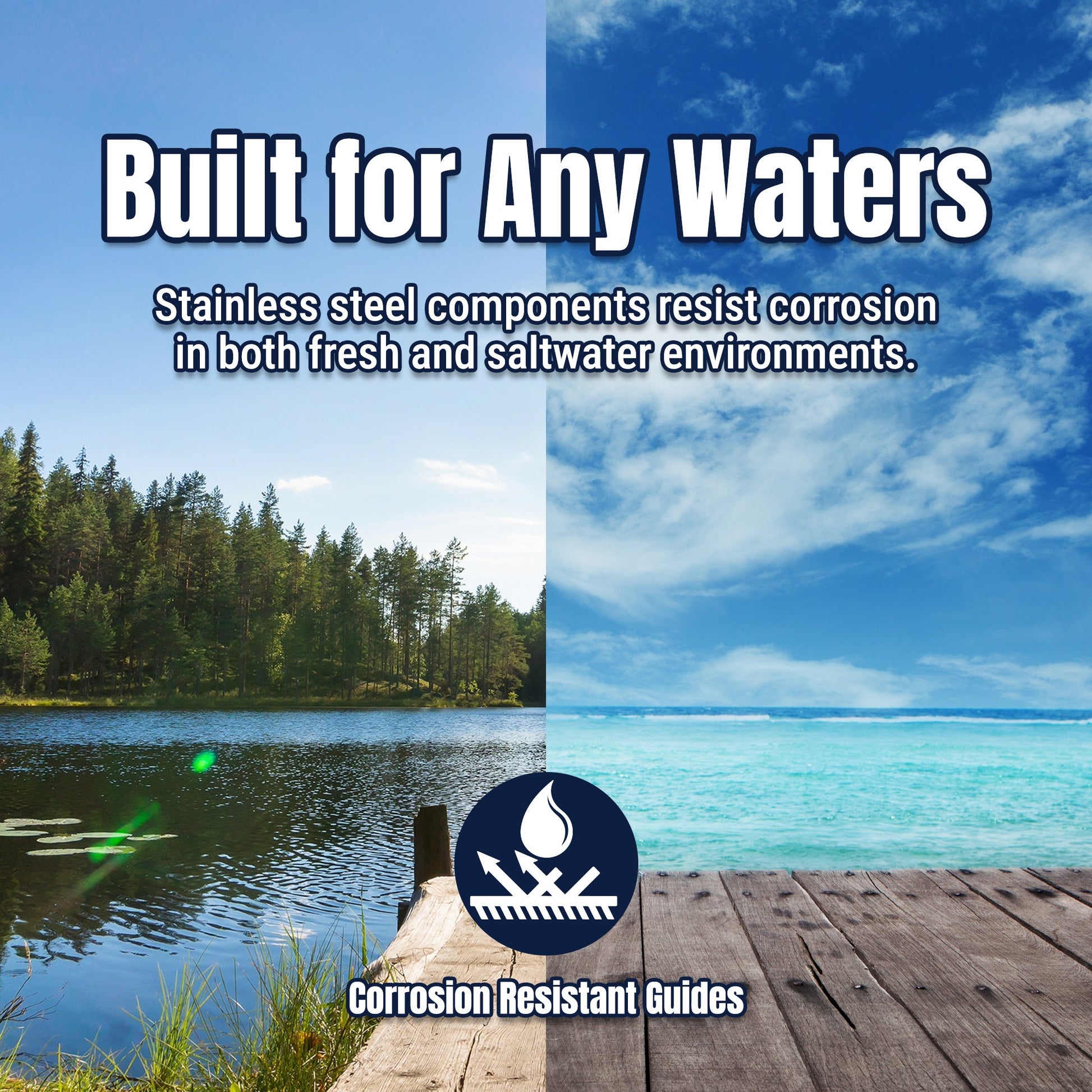 - Compatible con agua dulce y salada : diseñado para resistir cualquier entorno, desde arroyos de montaña hasta planicies costeras.