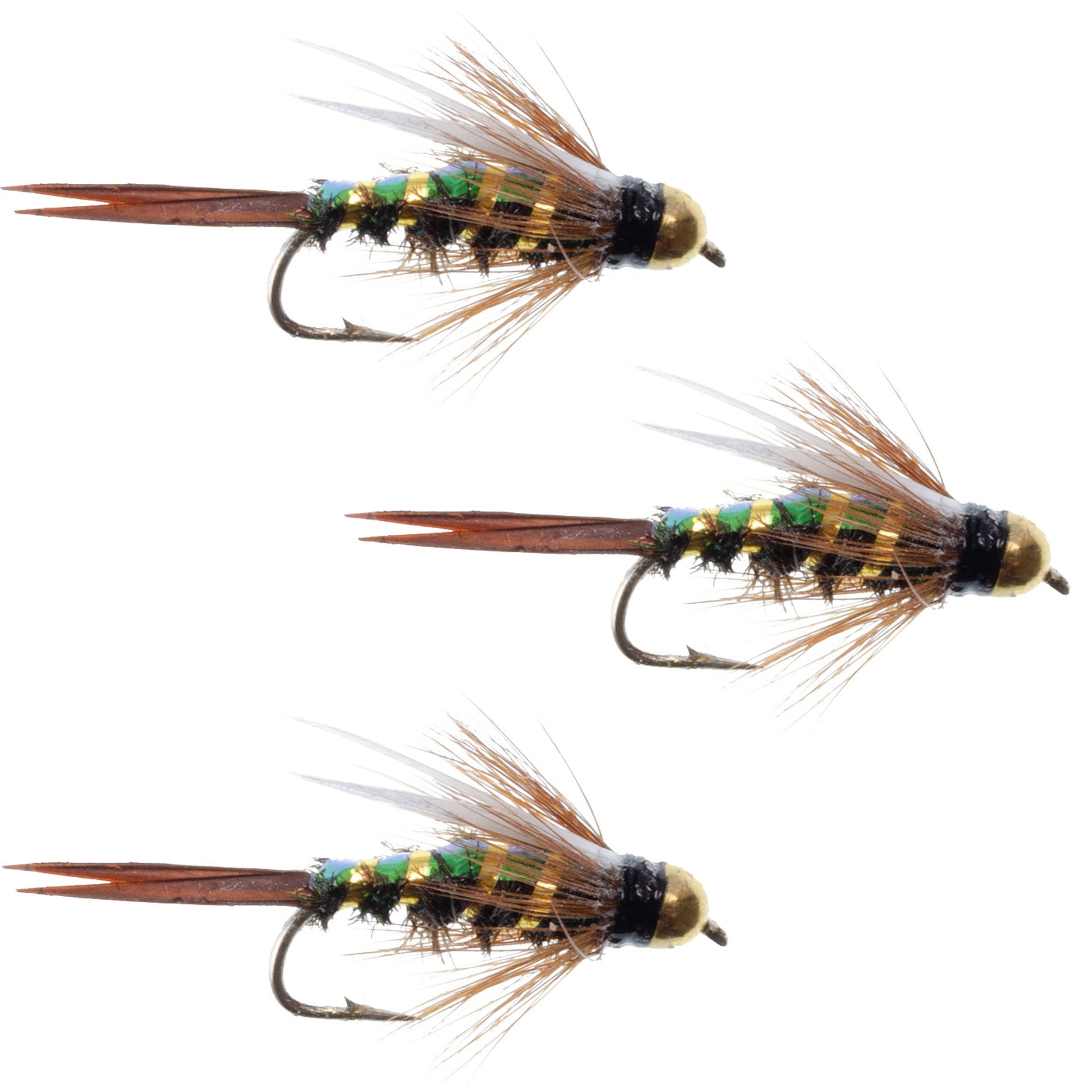 3 Pack Flash Back Tungsten Bead Head Prince Nymph Fly Fishing Flies - Hook Size 10